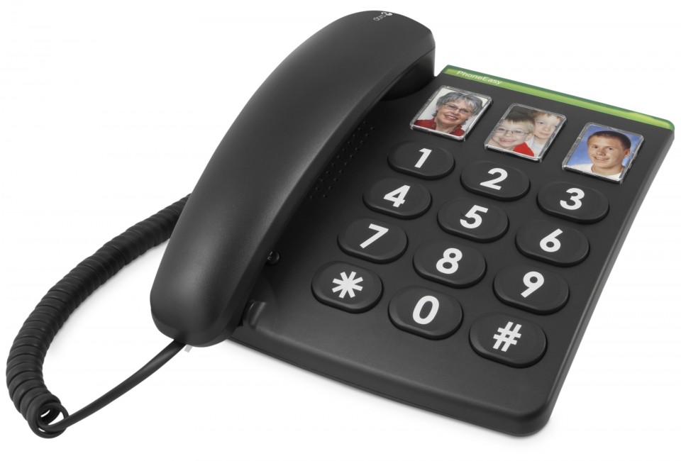 " Dieses Telefon wurde entwickelt, um das Telefonieren so komfortabel wie möglich zu machen. Große Tasten auf einer deutlichen und großzügigen Tastatur machen die Nummernwahl so einfach wie nie zuvor, während die Fototasten die Telefonverbindung mit bestimmten Personen mit einem Tastendruck ermöglichen. Visuelle Anrufanzeige und HAC (Hörgerätekompatibilität)."