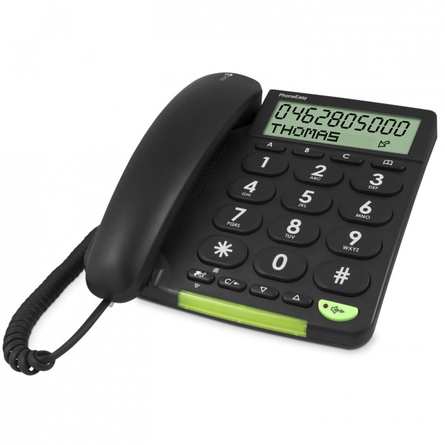 " A bestseller in a power adapterfree version for easier placement. Power is supplied through the phone line so you only need one connection. Easy to use with large buttons, clear display, speakerphone and even a visual ring indicator."